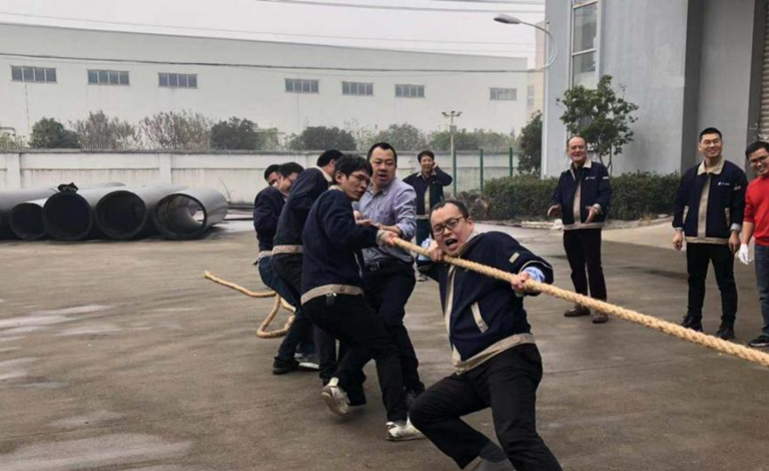 首先進(jìn)行的是拔河比賽。經(jīng)過抽簽,第一組比拼的隊(duì)伍是結(jié)構(gòu)壁管裝備事業(yè)部對(duì)戰(zhàn)營銷中心,第二組比拼的隊(duì)伍是實(shí)壁管裝備事業(yè)部對(duì)戰(zhàn)采購物流部。