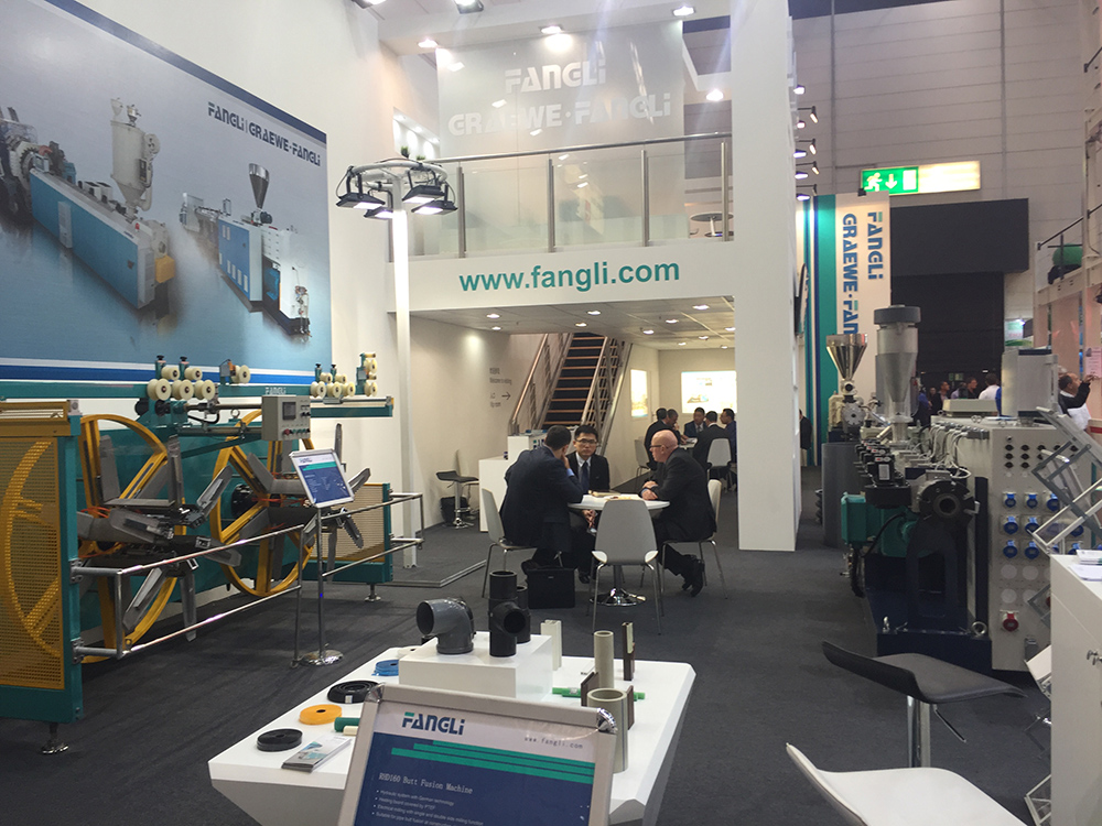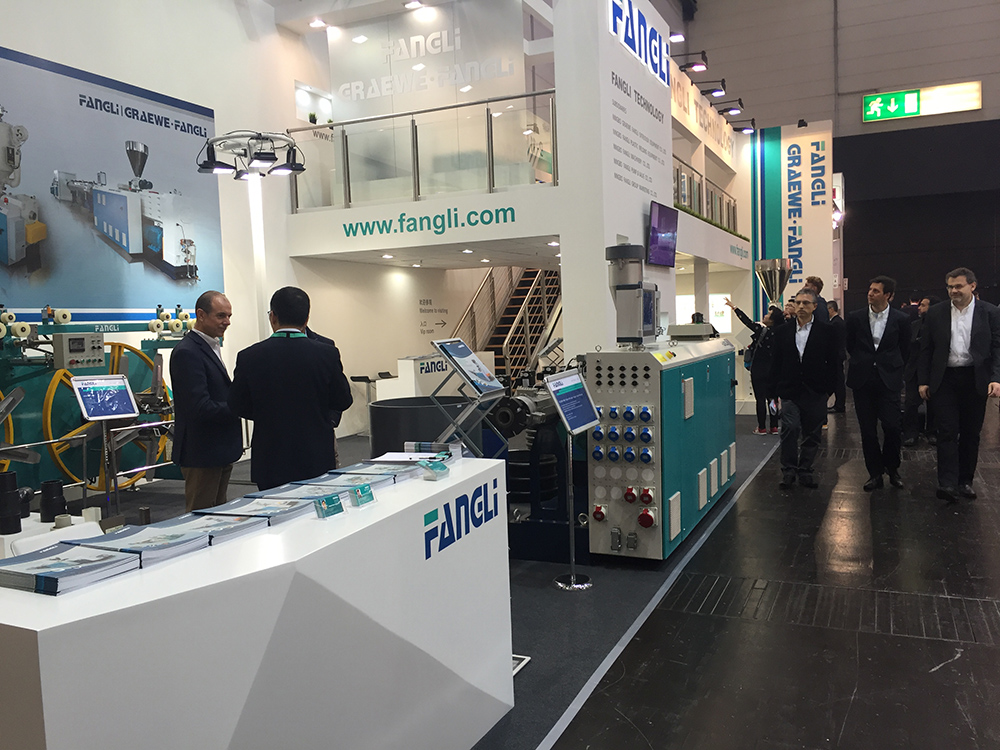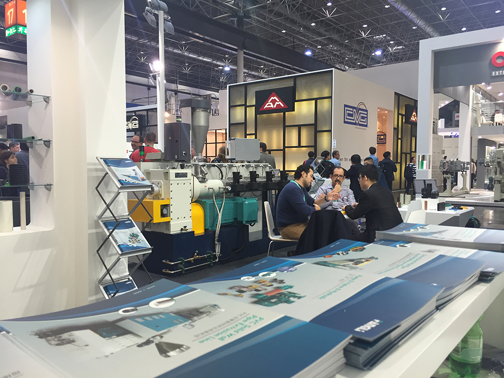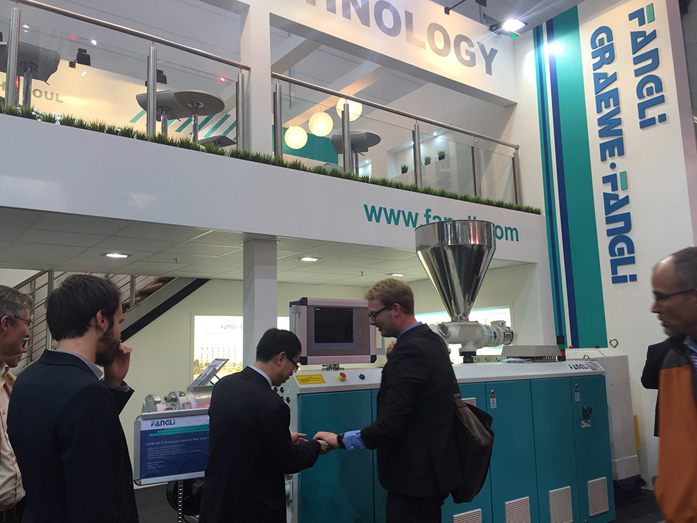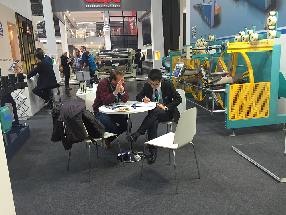 我司展位位于國際館17-A60,面積128平方米,由集團總裁方總親自率隊,集團副總裁王忠及營銷中心、研發中心共8名員工參展。展會期間全體人員精神飽滿、充分地展示了公司良好的形象、優質的產品、專業的素養。展會期間共接待來訪客戶共300余次,意向客戶及目標洽談項目較上屆有明顯增加,通過展會現場的技術交流發現:高速高效、自動化、節能環保的精密設備是未來塑料機械的市場需求方向。