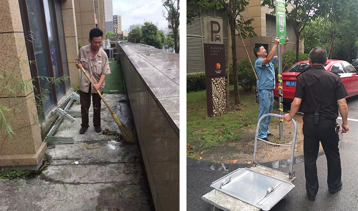 一夜強風,一夜暴雨。作為巴麗新地物業人,我們做了完全的準備,災后重建,眾志成城。業主家中漏水,住宅客服和保潔人員相互配合,第一時間進行清理。倒下的大樹,秩序員和工程人員攜手修復。積水過后的路面、草地、死角,全部消毒。臺風刮落的雜物保潔員細心清掃,刮壞的標識維修工認真修理。一舉一動都透露出“全心全意全為您”的服務精神。